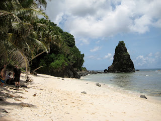 The next day we went for a short hike before catching a plane to Western Samoa. We rented a car and immediately went to the South side of the island. We went to the Sua Trench (some of you might remember that picture of a gigantic sink hole in one of my earlier blogs), it was very low tide. There is a hole in which water comes in from the ocean you have to swim underwater and hold your breath to keep the . I've never swam to it because every time I've been there the tide has been to extreme to risk trying it but this was a calm day. Andrea and I went over to the edge and like little kids debated whether or not we should try and swim under it. After numerous scouting attempts, i said i was going to do one more scouting attempt. I got halfway there and realized that it would take longer to turn around and get back than just going for it. I get to the other side and shout for Andrea but my voice is blocked by water and rock so after a few quick deep breaths i make the dive under and go back for her. I make it back to the other side gasping for air. I told her that it is totally doable but to make sure she is ready to kick as it is a good 50 feet of underwater swimming. We proceed to do this about 4 times before we finally decide that we are done.